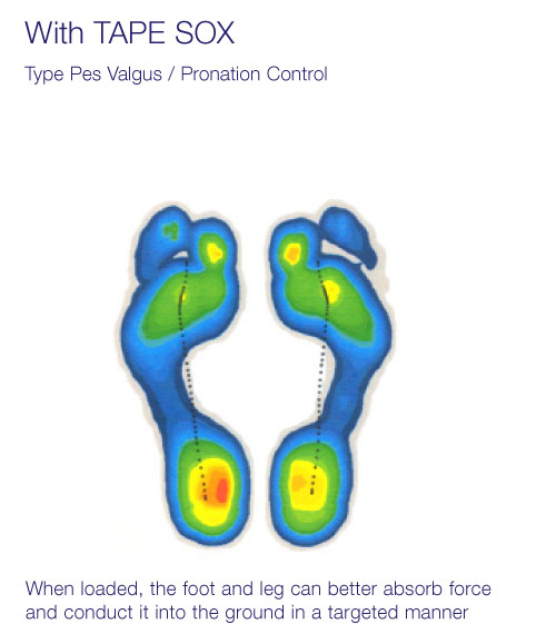 Depending on the sock type, the tape socks have a variety of directional tapes incorporated into them and can therefore be used to purposefully counteract common malpositions.